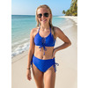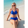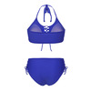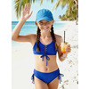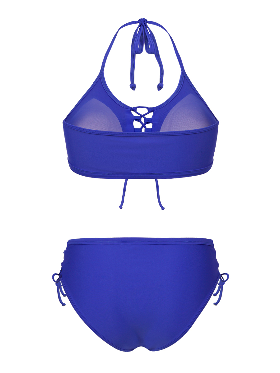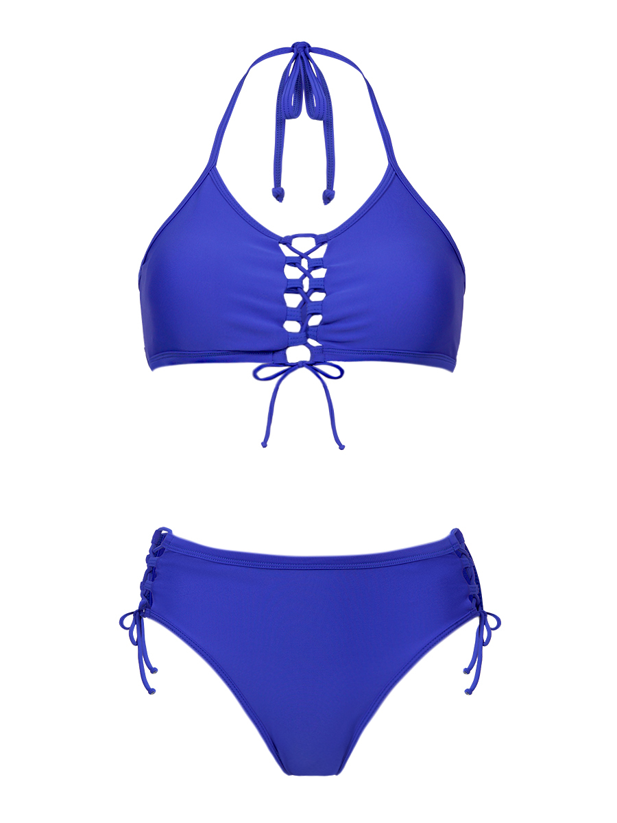 Эффектный раздельный купальник для девочек-подростков в ярком синем ультрамариновом оттенке. Лиф и плавки на шнуровке, что позволит легко отрегулировать купальный костюм по размеру. Купальник для девушек целиком на тонкой эластичной сетке-подкладке. Мягкий эластичный трикотаж купальника разработан специально для купальных костюмов и идеально садится по фигуре, имеет защитную обработку от хлора и УФ выгорания, мгновенно высыхает, имеет шелковистую поверхность. Лиф-топ купальника фиксируется завязками на шее. Низ топа с широкой эластичной резинкой под грудью. Мягкие съёмными чашки-вкладыши анатомической формы легко вынимаются при необходимости. Центр переда шнуруется до комфортного размера. Плавки с высокой посадкой , по бокам также имеют удобную шнуровку. Универсальная модель для пляжа и бассейна легко комбинировать с самыми разными пляжными аксессуарами.