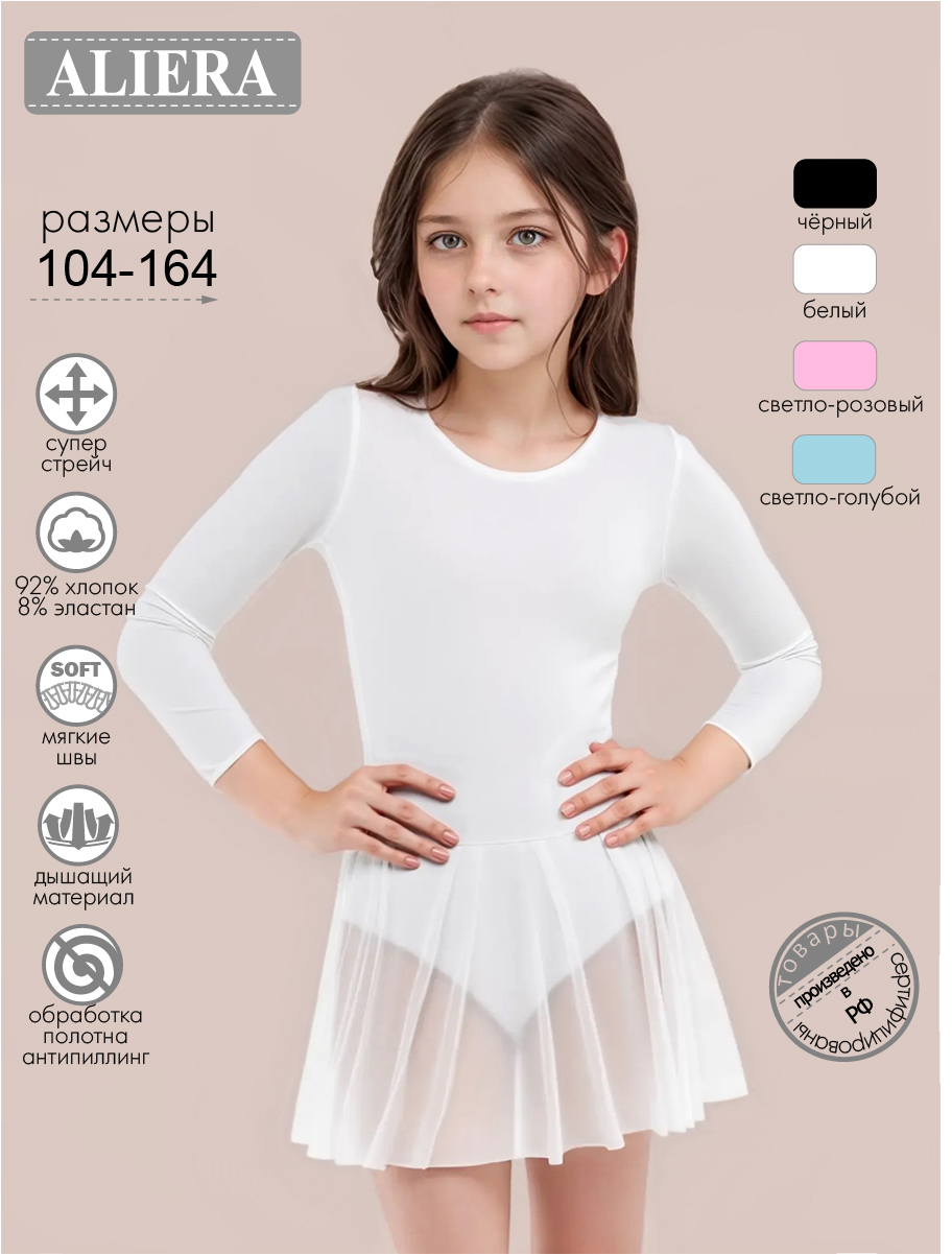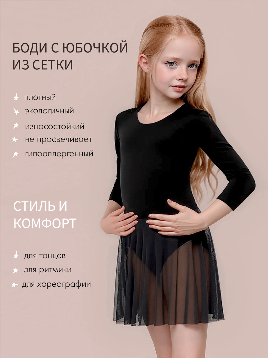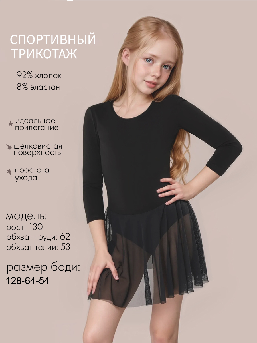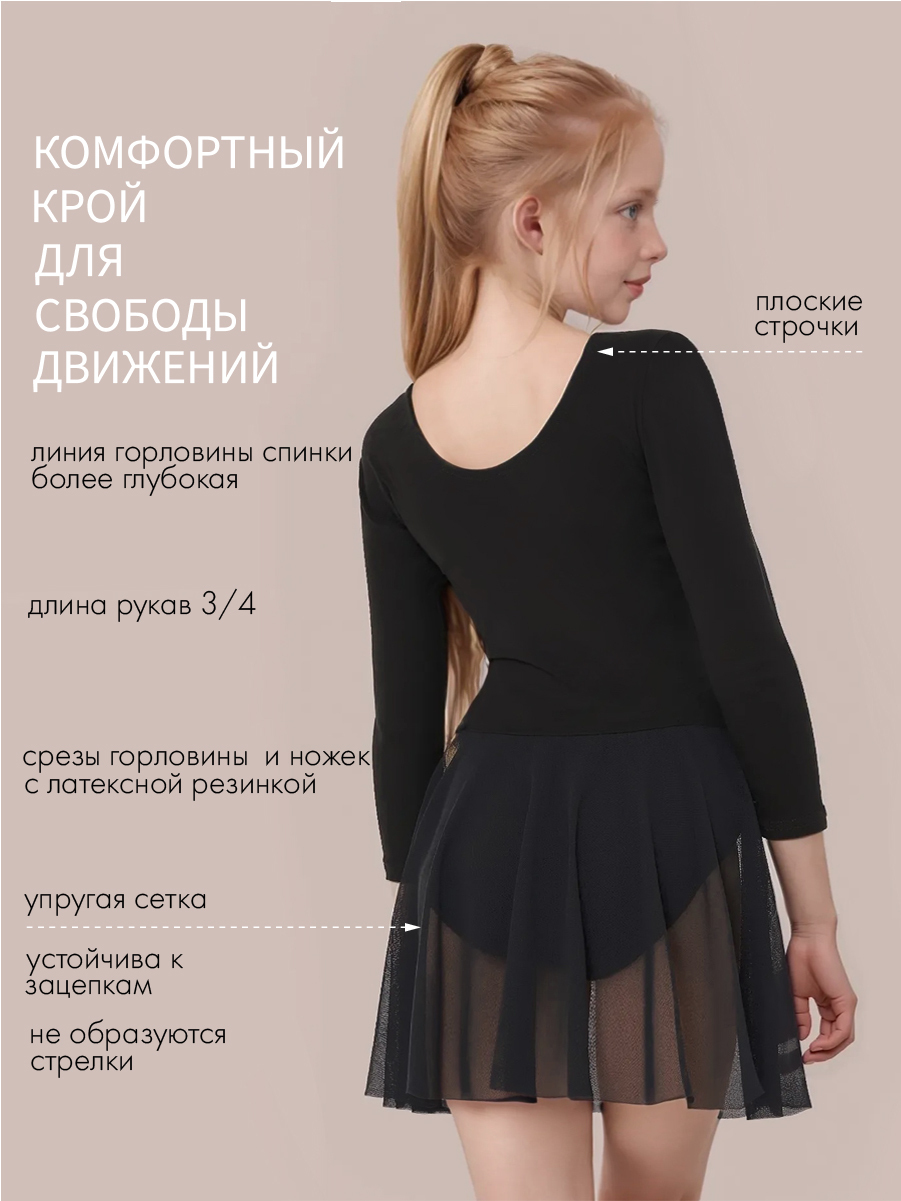 Г 3.03 Костюм гимнастический для девочек с юбкой из сетки длиной выше линии колен и рукавом 3/4.