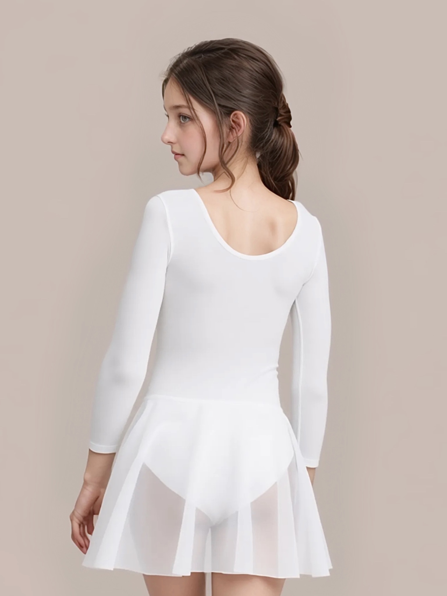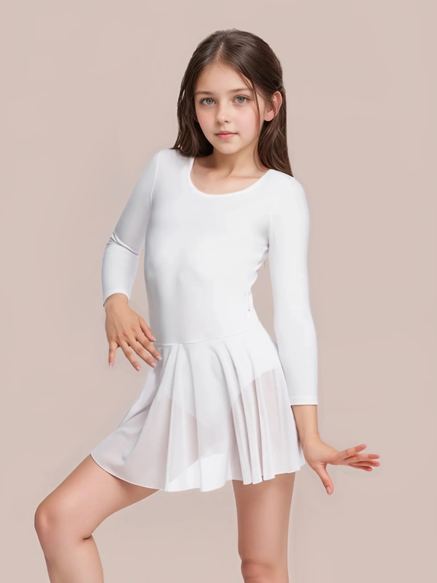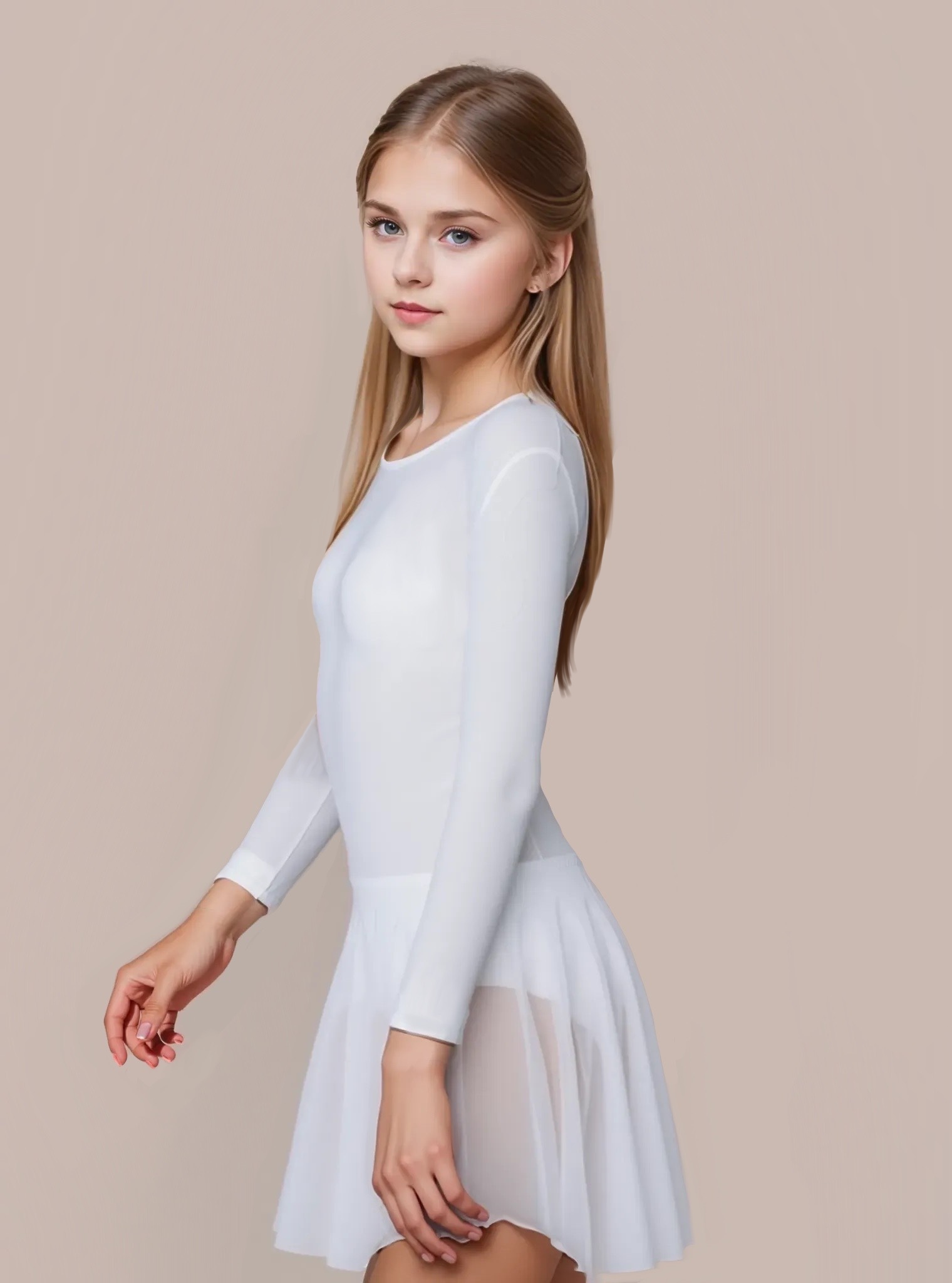 Г 3.03 Костюм гимнастический для девочек с юбкой из сетки длиной выше линии колен и рукавом 3/4.