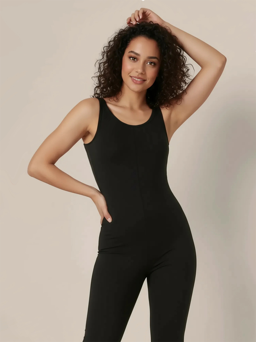 ГК 3.03 Комбинезон гимнастический унисекс облегающего кроя имеет нижнюю часть в виде брюк с небольшим клешением от линии колен и верхнюю часть в в виде майки на широких бретелях.