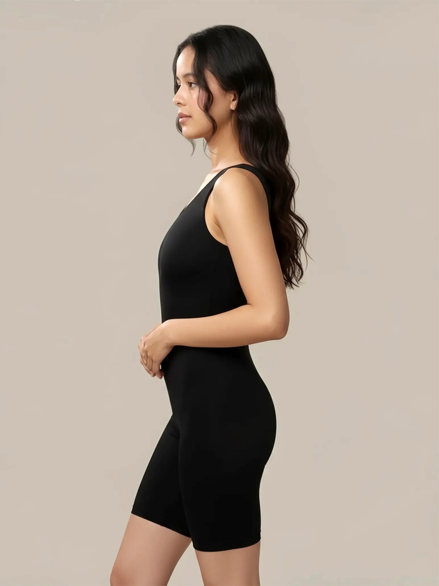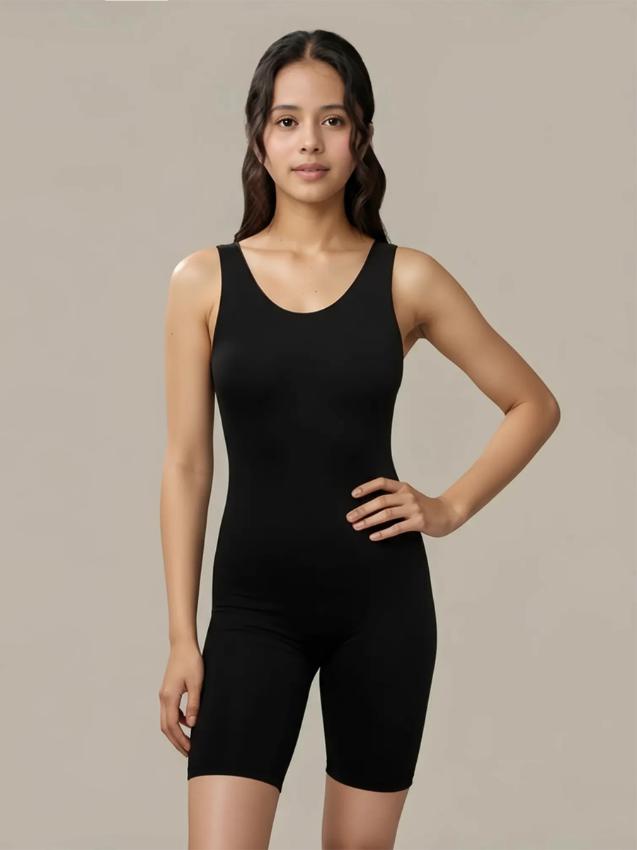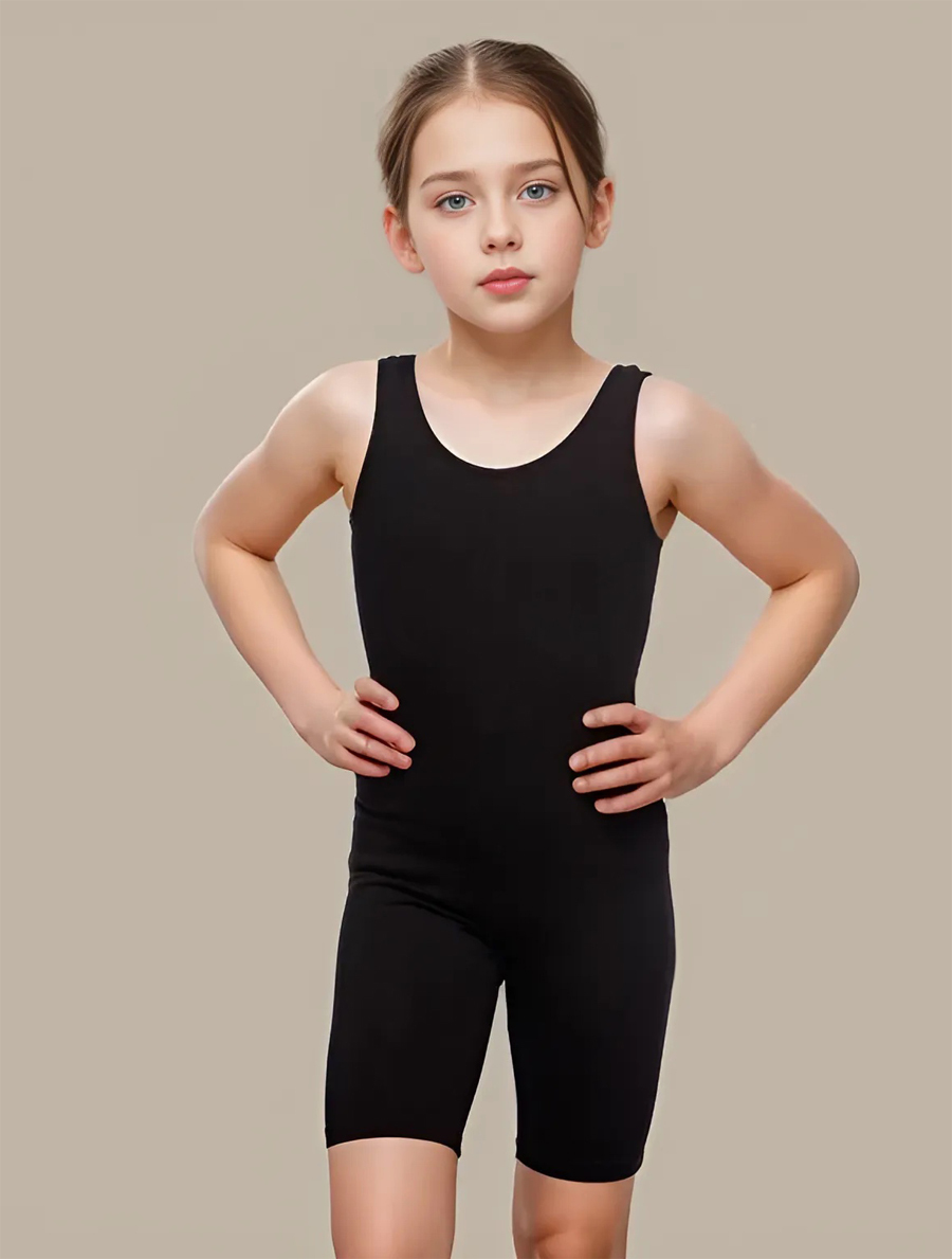 ГК 4.03 Комбинезон детский гимнастический унисекс облегающего кроя имеет нижнюю часть в виде облегающих велосипедок длиной выше линии колен и верхнюю часть в в виде майки на широких бретелях.
