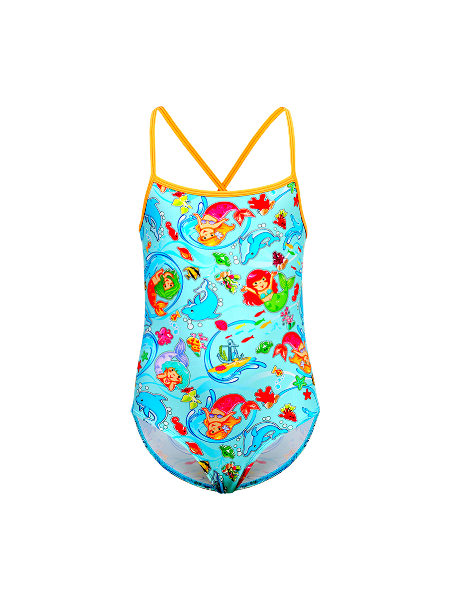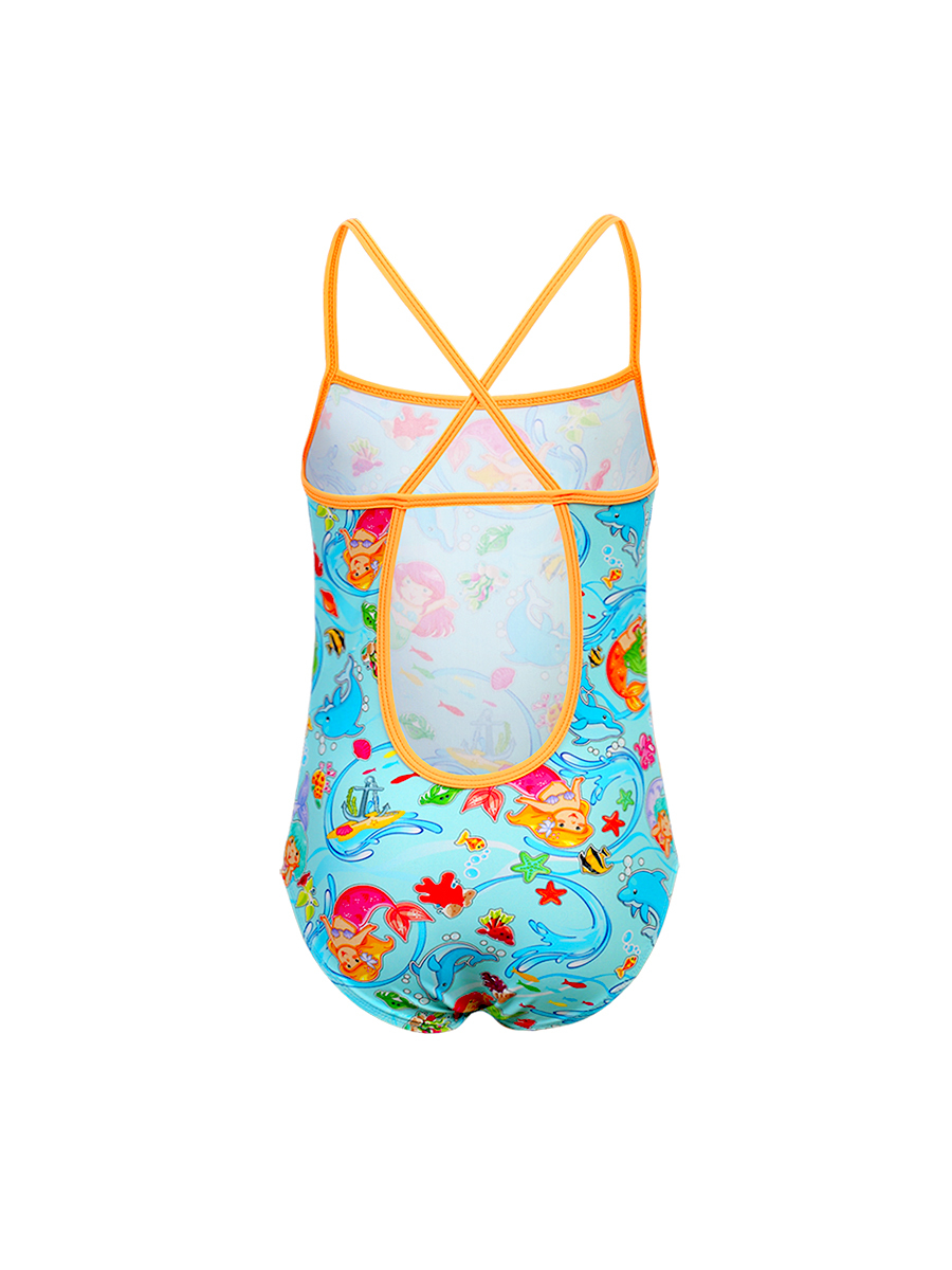 К 20.36 Цельнокроенный купальник для девочек выполнен из полотна с ярким тематическим принтом. Неоновая отделка украшает бретели, линию горловины, эффектный фигурный вырез спинки.
