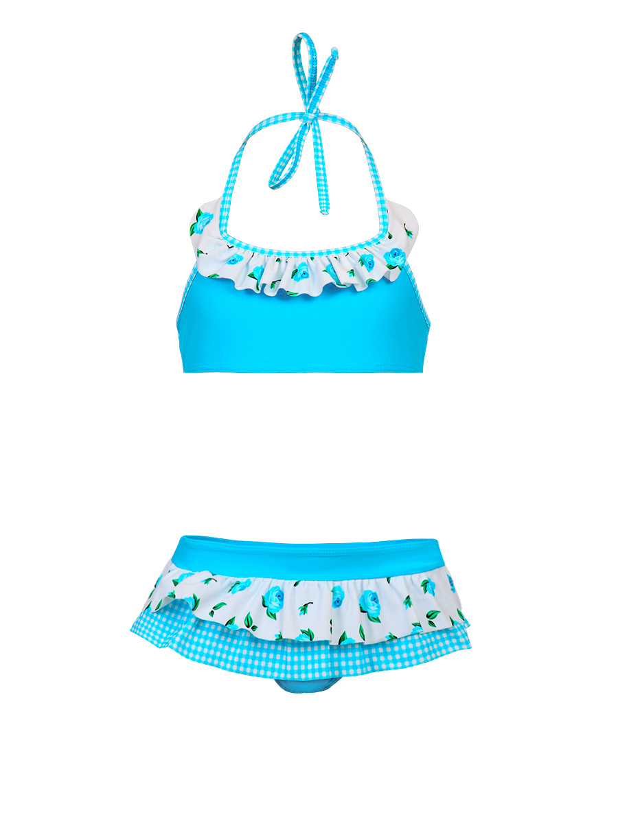 К 22.20.19 Двухпредметный купальник для девочек. Верх- топ фиксируется тонкими эластичными завязками на шее.
