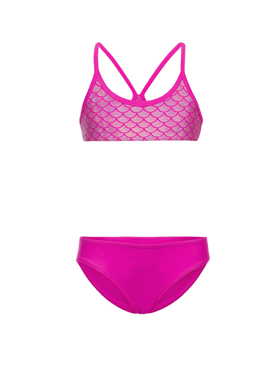 Верх- топ анатомического кроя с тонкими лямками, сходящимися в центре спинки выполнен из ткани с эффектиом металлизации. Очень красиво выглядит на солнце.