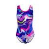 К 22.48 Цельнокроеный купальник для девочек выполнен из яркой принтованной ткани. Изделие с боковыми швами.