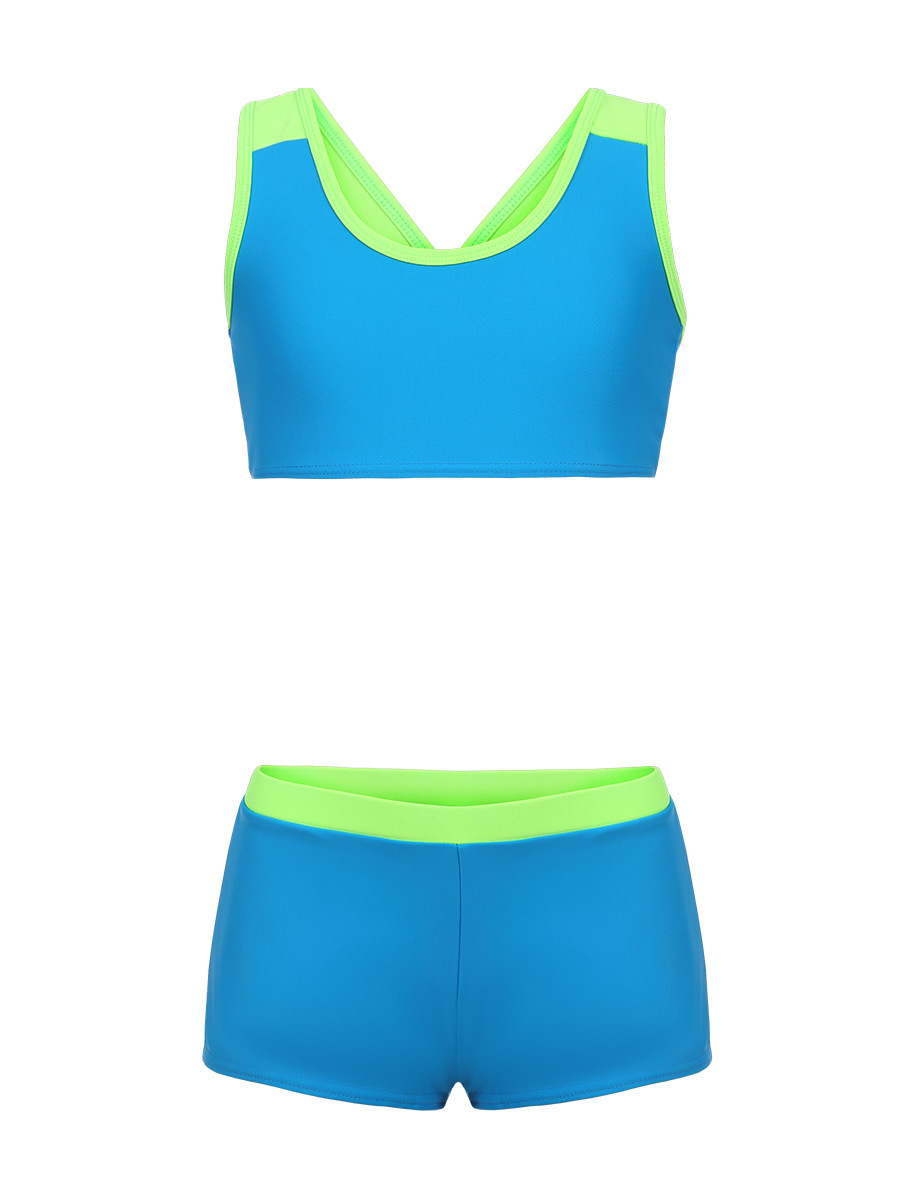 К 23.14 Купальник для девочек и девушек в спортивном стиле выполнен на комбинации двух ярких сочных оттенков. Топ с широкими бретелями, закреплёнными в центре спинки. Плавки-шорты со средней высотой посадки декорированы широким поясом с эластичной резинкой. Модель прекрасно подойдёт как для активного пляжного отдыха , так и для занятий в бассейне. В размерах 12,13, 14 лет лиф имеет подклад.