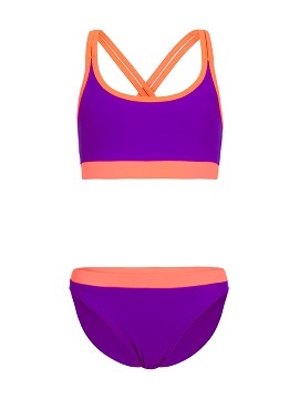 К 23.19 Двухпредметный купальник в спортивном стиле для плаванья, выполнен из однотонной яркой ткани.Верх- топ анатомического кроя с двойными тонкими лямками, контрастного цвета и сходящимиеся в центре спинки крест - накрест.
