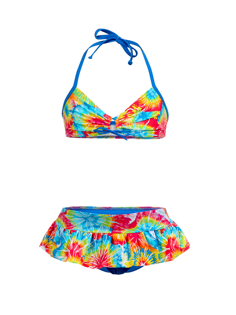 К 23.21.20 Модный яркий раздельный купальник для девочек. Верх- топ с регулирующейся драпировкой по центру переда и тонкими эластичными завязками для фиксации на шее.