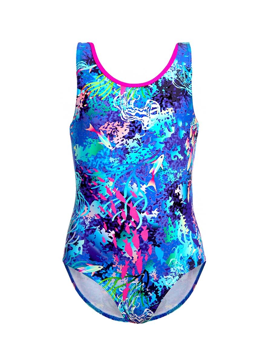 К 22.32 Слитный купальник для девочек выполнен из принтованной лайкры. Изделие с боковыми швами.
