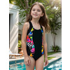 К 23.4.01 Купальник цельнокроеный для девочекк выполнен из однотонной и принтованной лайкры. Спинка с фигурным вырезом. Широкие эластичные лямки закреплены по типу "борцовка", что очень удобно. Передняя часть купальника декорирована симметричными фигурными вставками с ярким принтом цвета.