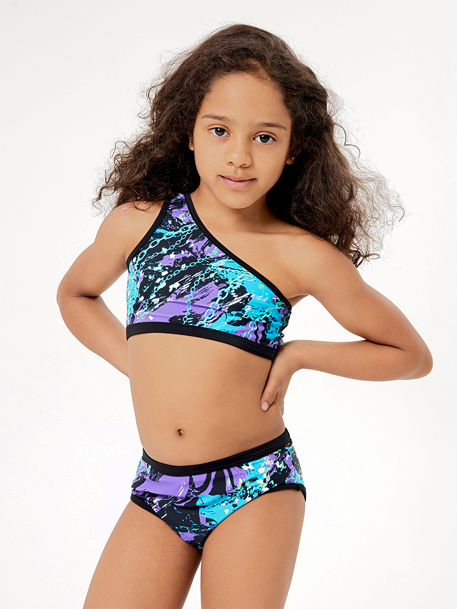 К 25,10 Раздельный купальник для девочек и девушек выполнен в модном принте в стиле Grunge. Ассиметричный топ на одно плечо и плавки высокой посадки декорированы эластичной контрастной окантовкой. Низ топа и верх плавок обработаны с широкой окантовкой с мягкой резинкой внутри.