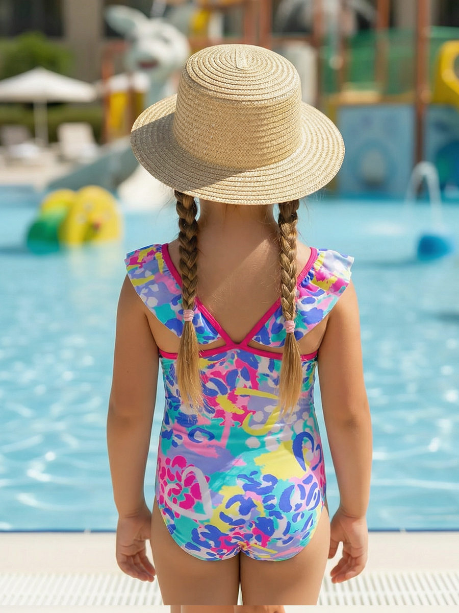 К 25.24 Слитный купальник для девочек дошкольного и младшего школьного возраста выполнен в пастельных оттенках. Линия горловины с яркой контрастной окантовкой, с оборкой, переходящей в бретели с крылышками, которые защитят плечики от солнечного ожога. Бретели закреплены в центре спинки, что особенно удобно при активном отдыхе и на пляже, и в бассейне, и в аквапарке.