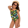К 25.27 Слитный купальник для девочек выполнен в яркой тропической расцветке.Купальник с широкими удобными бретелями.Линия горловины с яркой неоновой окантовкой, переходящей на спинке в красивое и удобное в носке перекрестье.