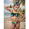 К 25.58 Стильный купальник для девочек школьного возраста выполнен в абстрактном ярком принте и состоит из классического топа и плавок со средней высотой посадки. Двойные бретели в тон принта фиксируются на спинке крест-накрест, что особенно удобно при активном пляжном отдыхе , в аквапарке и бассейне.