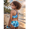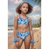 К 25,72 Классический раздельный купальник в спортивном стиле для девочек выполнен в ярком принте. Топ с яркой однотонной окантовкой по линиям горловины и пройм, переходящей в удобные тонкие эластичные бретели, сходящиеся на спинке в центре. Плавки с комфортной посадкой, со средней высотой линии бока.