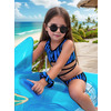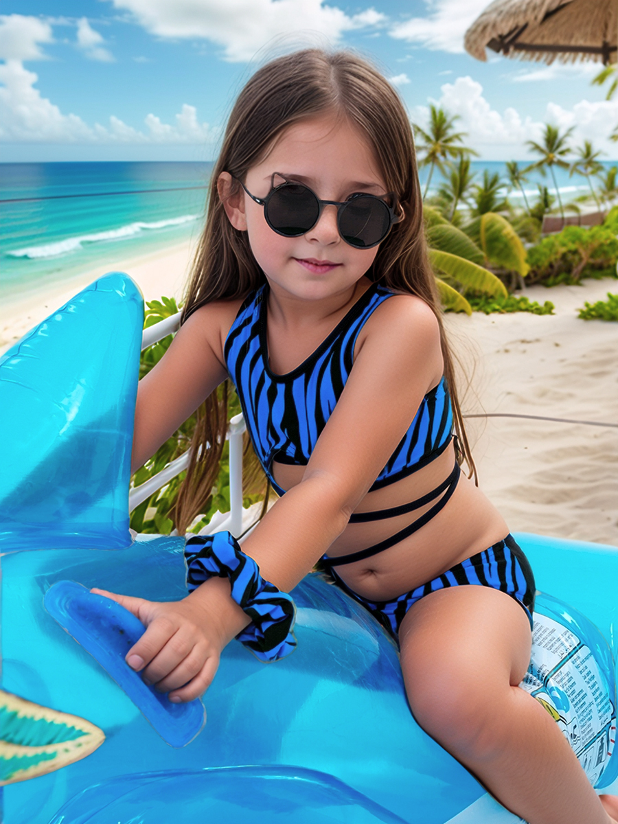К 25.83 Эффектный раздельный купальник для девочек выполнен с модным принтом "Animal".Топ с широкими бретелями, фигурным вырезом внизу передней детали, с декоративными тонкими эластичными завязками. Плавки высокой посадки с однотонной задней деталью , с вырезами для ног средней высоты делают модель комфортной для активного пляжного отдыха. Перёд топа и плавок на подкладке из эластичной быстросохнущей сетки.