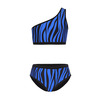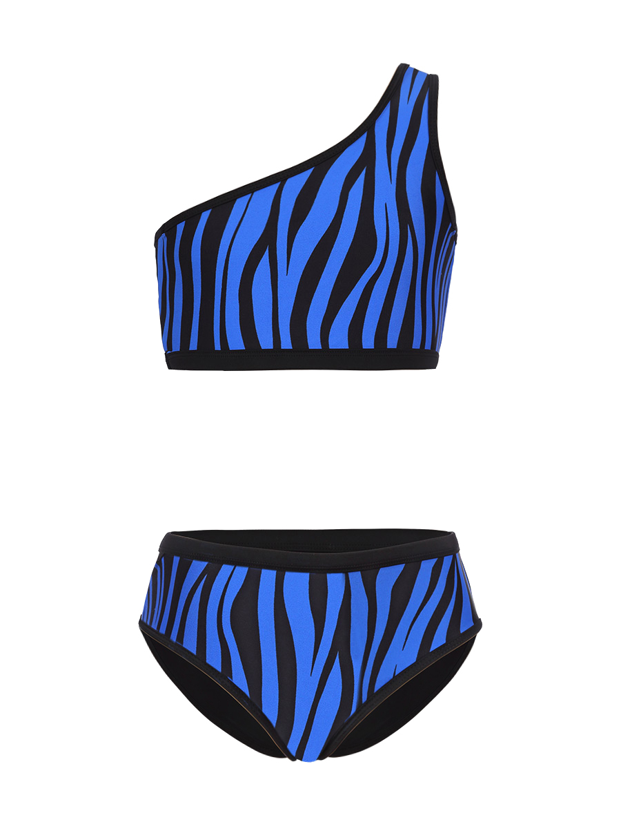 К 25.84 Купальник для девочек и девушек в спортивном стиле выполнен из комбинации принтованной и однотонной ткани. Эффектный топ с одним открытым плечом, очень нравиться юным модницам.Плавки комфортной посадки с однотонной задней деталью , с вырезами для ног средней высоты делают модель комфортной для активного пляжного отдыха.. Мягкая эластичная ткань купальника разработана специально для купальных костюмов и идеально садится по фигуре.Модель прекрасно подойдёт как для пляжного отдыха , так и для занятий в бассейне.