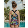 К 25.90 Купальник слитный спортивный для девочек комбинированный из двух полотен: однотонного и с ярким абстрактным принтом. Центральная часть переда и спинки выполнены с принтом. Перед с вертикальными рельефами, швы которых оформлены контрастным кантом,что очень эффектно смотрится на фигуре. выходящими от линии проймы до линии ножек. Спинка с фигурным вырезом и с яркими широкими брителями, закреплёнными крест - накрест, что обеспечивает дополнительный комфорт в использовании. Ткань купальника специально разработана для данного ассортимента: устойчива к воздействию ультрафиолета, хлору, быстро сохнет.