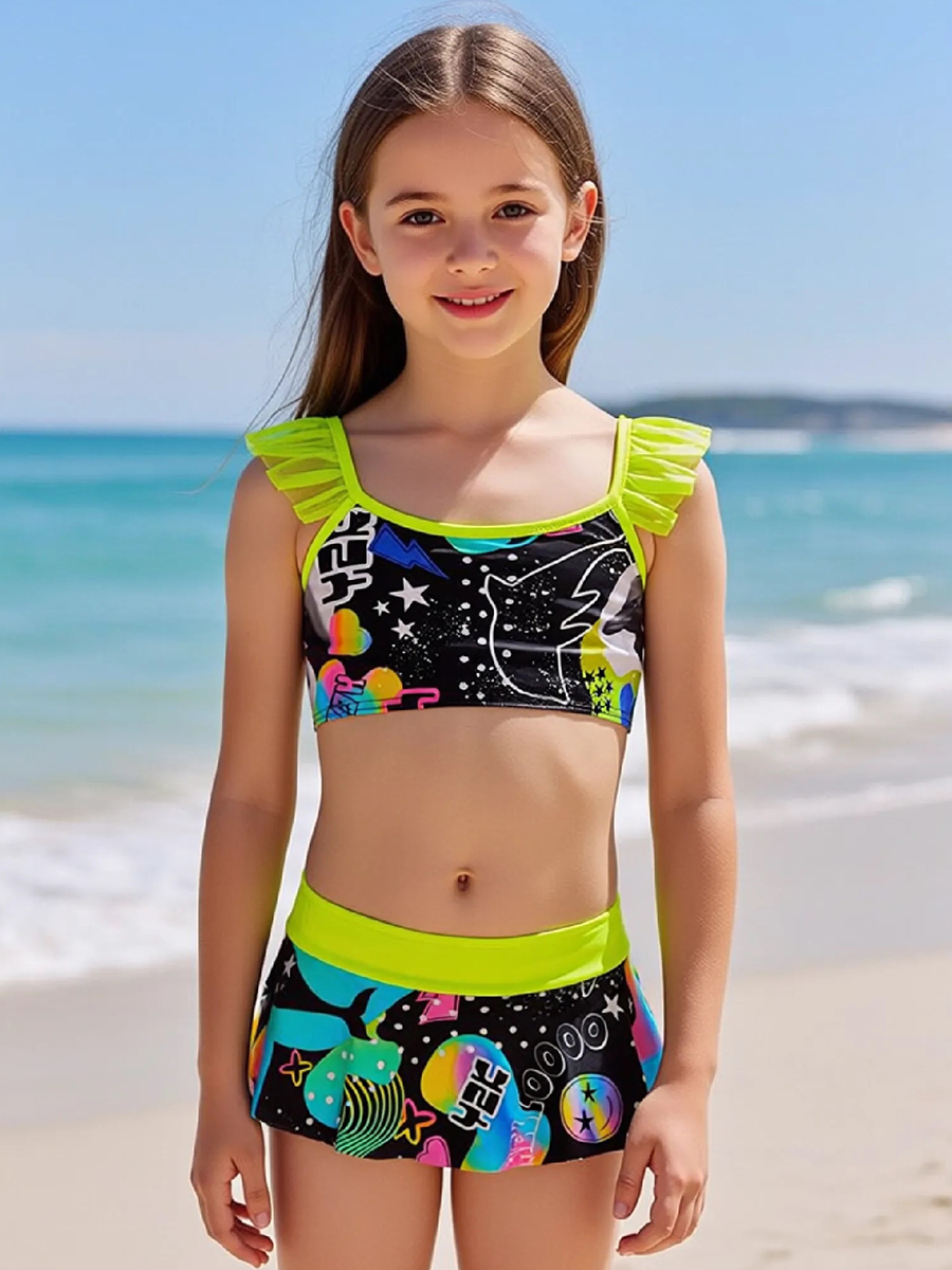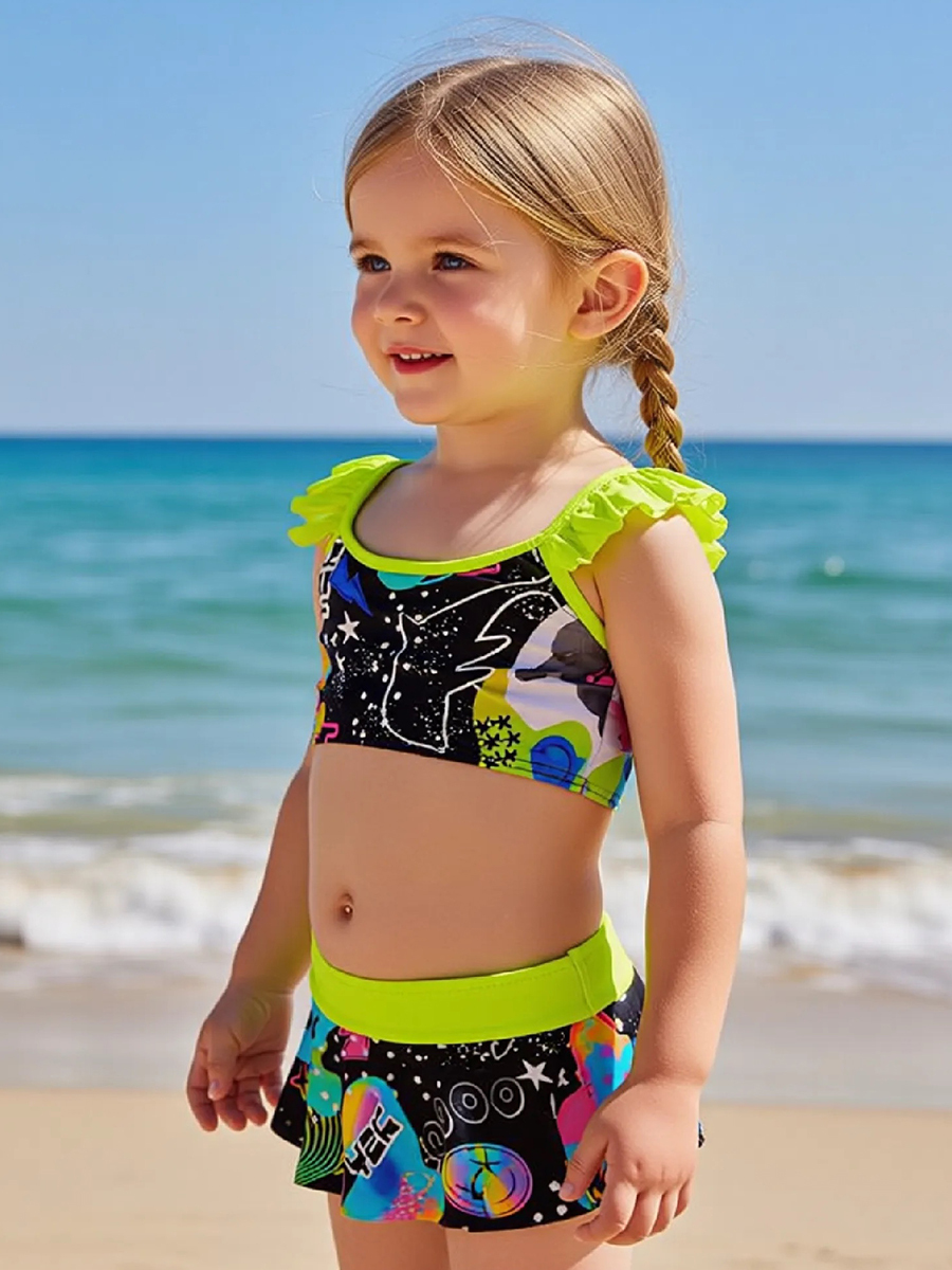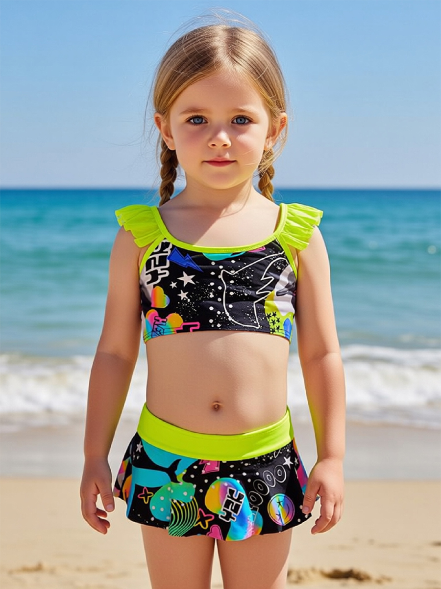 Детский раздельный купальник ALIERA с юбочкой станет прекрасным выбором для летнего отдыха. Модель выполнена из приятного к телу материала - нейлона и спандекса, что обеспечивает комфорт и свободу движений. Яркие цвета: голубой, лимонный неон, бирюзовый и малиновый - порадуют юных модниц на контрасте с чёрным и белым.Топ удлинённый без застёжки, что особенно удобно для активных деток, с яркими неоновыми эластичными бретелями, в которые вложены крылышки из воздушной сетки, защищающие детские плечики от палящего солнца. Юбочка-мини на плавках добавит образу игривости и кокетства. Купальник ALIERA - идеальный вариант для пляжного отдыха, игр у бассейна или просто для летних прогулок. Уход за купальником очень прост – рекомендуется стирать его вручную при температуре до 30 градусов. Купальный костюм имеет широкий размерный ряд, что позволяет легко подобрать нужный размер девочкам разной комплекции. Вся наша продукция произведена в РФ, сертифицирована и безопасна.