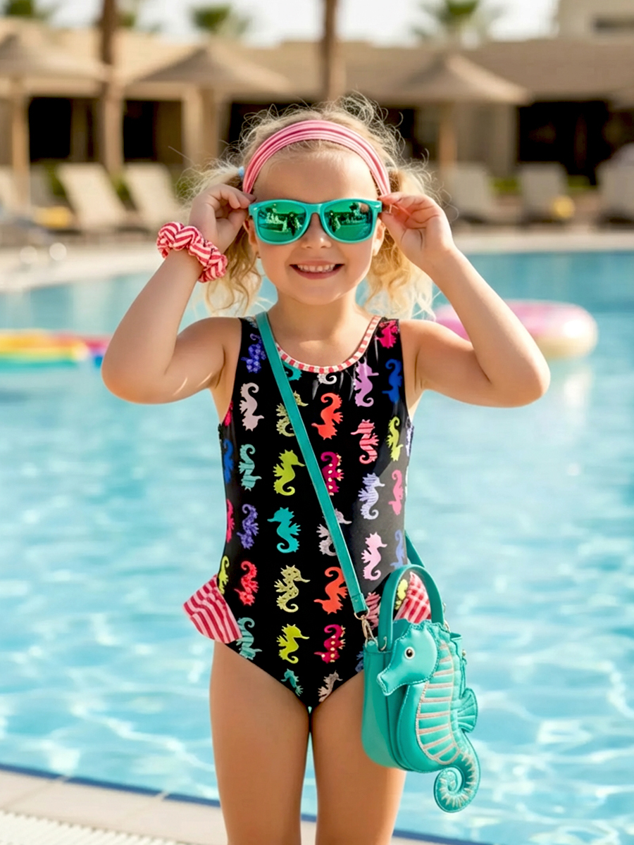 Слитный милый купальник с пышной оборкой-юбочкой станет незаменимым элементом гардероба для летнего отдыха у воды. Этот купальник для девочек сочетает в себе стиль и комфорт, обеспечивая максимальную свободу движений во время плавания в бассейне, на пляже и игр на пляже. Купальный плавательный костюм сочетает в себе функциональность, качество и идеальную посадку, обеспечивает отличную износостойкость и быстро сохнет. Закрытый дизайн гарантирует надежную защиту от солнечных лучей, что особенно важно для нежной кожи ребенка. Удобные широкие бретели с перекрестьем из беек на спинке обеспечивают надежную поддержку при любых активностях. Модель в авторском дизайне идеально комбинируется с различными аксессуарами, создавая гармоничный образ для летнего отдыха. Позвольте вашему ребенку наслаждаться каждым моментом на воде с этим прекрасным предметом одежды, который сочетает в себе все необходимые характеристики для беззаботного летнего отдыха. Благодаря широкому размерному ряду он подойдет как для малышей ясельного возраста 2-3 лет, так и для девочек младших классов 7-8лет.