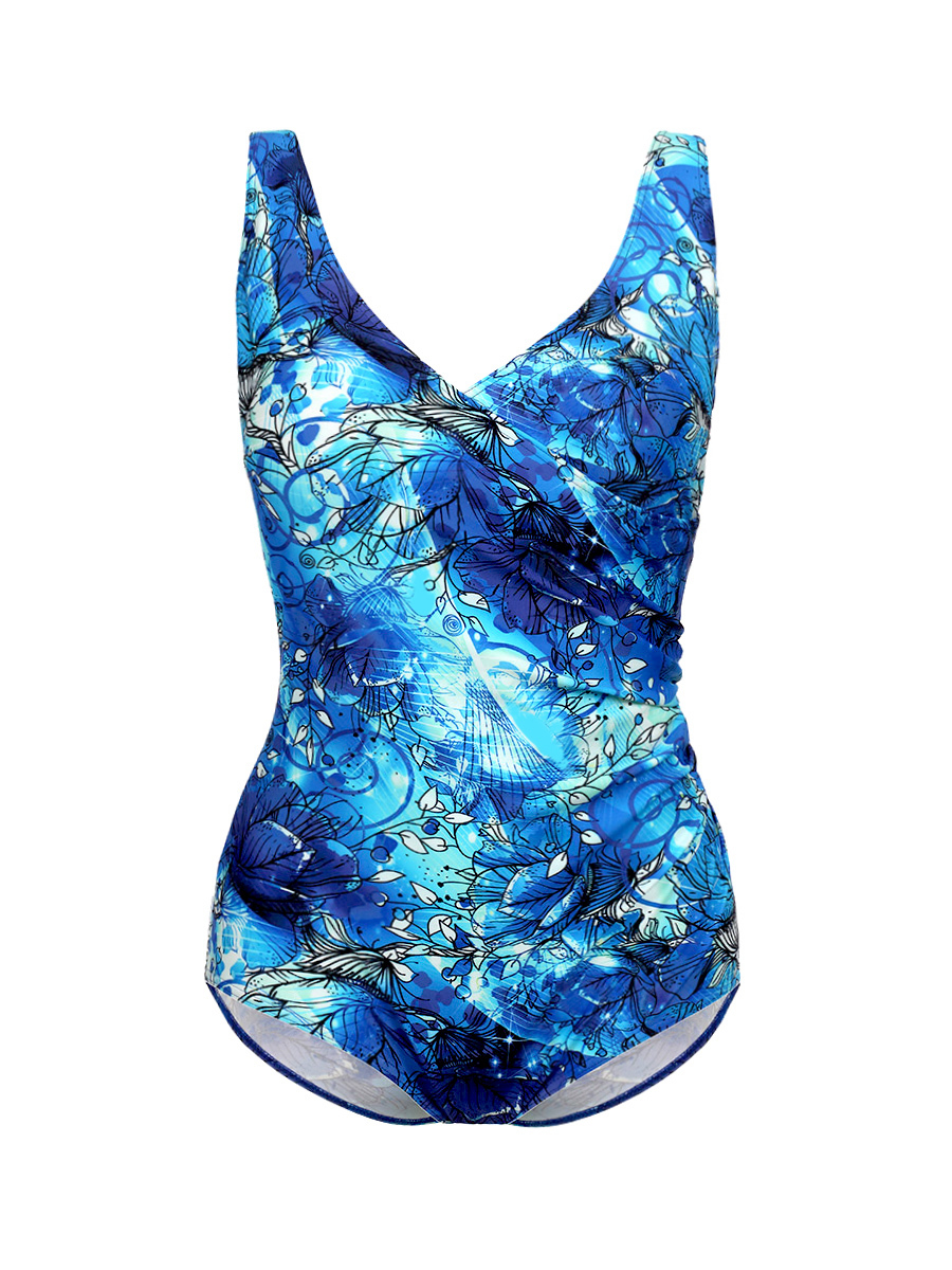 Ч 22.9.82  Купальник женский цельнокроенный больших размеров, с чашечками, с запахом переда и легкой драпировкой от бокового шва. Спинка с вырезом средней глубины.