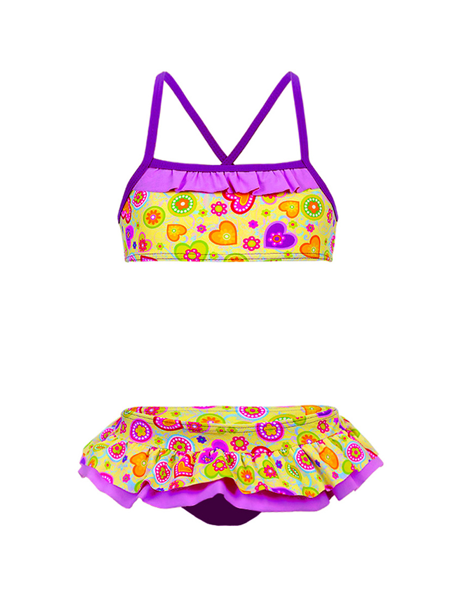 К 21.15 Купальник для девочек двухпредметный. Верх- удобный топ с изящной оборкой по линии горловины,с цельновыкроенной спинкой на тонких эластичных бретелях, которые закреплены на спинке крест - накрест.