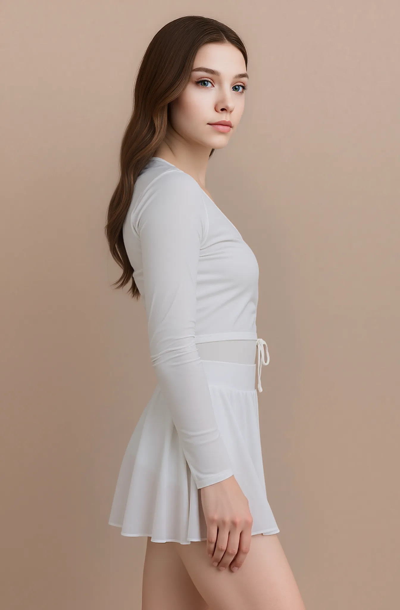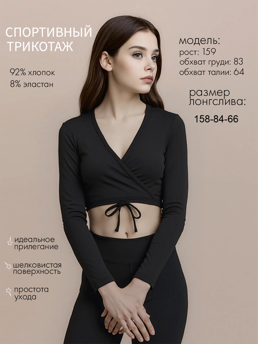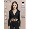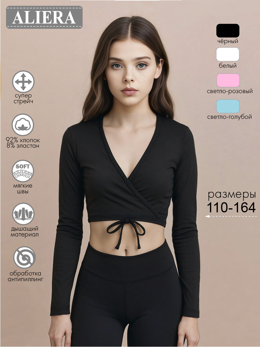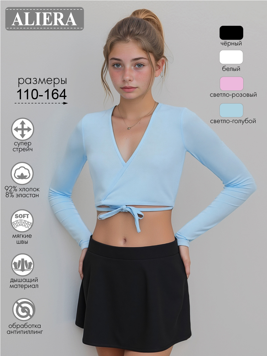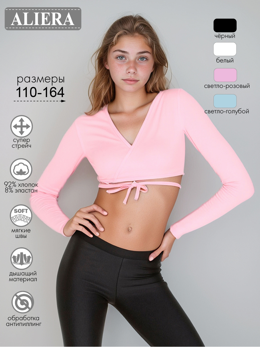 Т 9.03 Топ для девочек с длинными рукавами, с запахом и завязками из хлопкового качественного полотна .